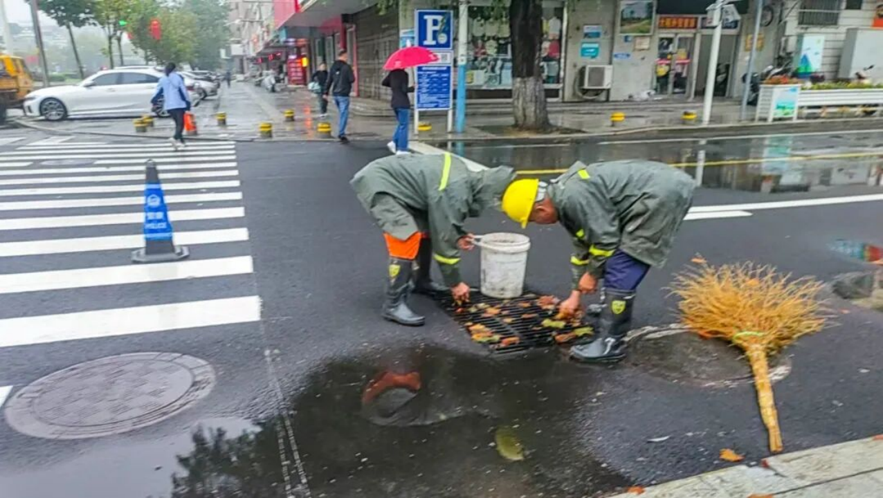 这边路面在“疗伤”,那边排水口也迎来了“大考验”。秋天落叶本就多,被暴雨一冲,全往雨水箅子里“钻”,直接导致排水效率下降,易引发路面积水。