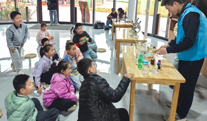 午后的“米粒实验室”成为探索自然的乐园。在稻蟹共生课堂上,参与者通过生态模型清晰了解“稻养蟹、蟹肥稻”实现“一水两用、一田双收”的生态共赢;观察水质监测实验,对比不同液体的pH值,理解生态保护对粮食安全的重要性;通过显微镜观察稻穗细胞,在微观世界里发现植物生命的精致。