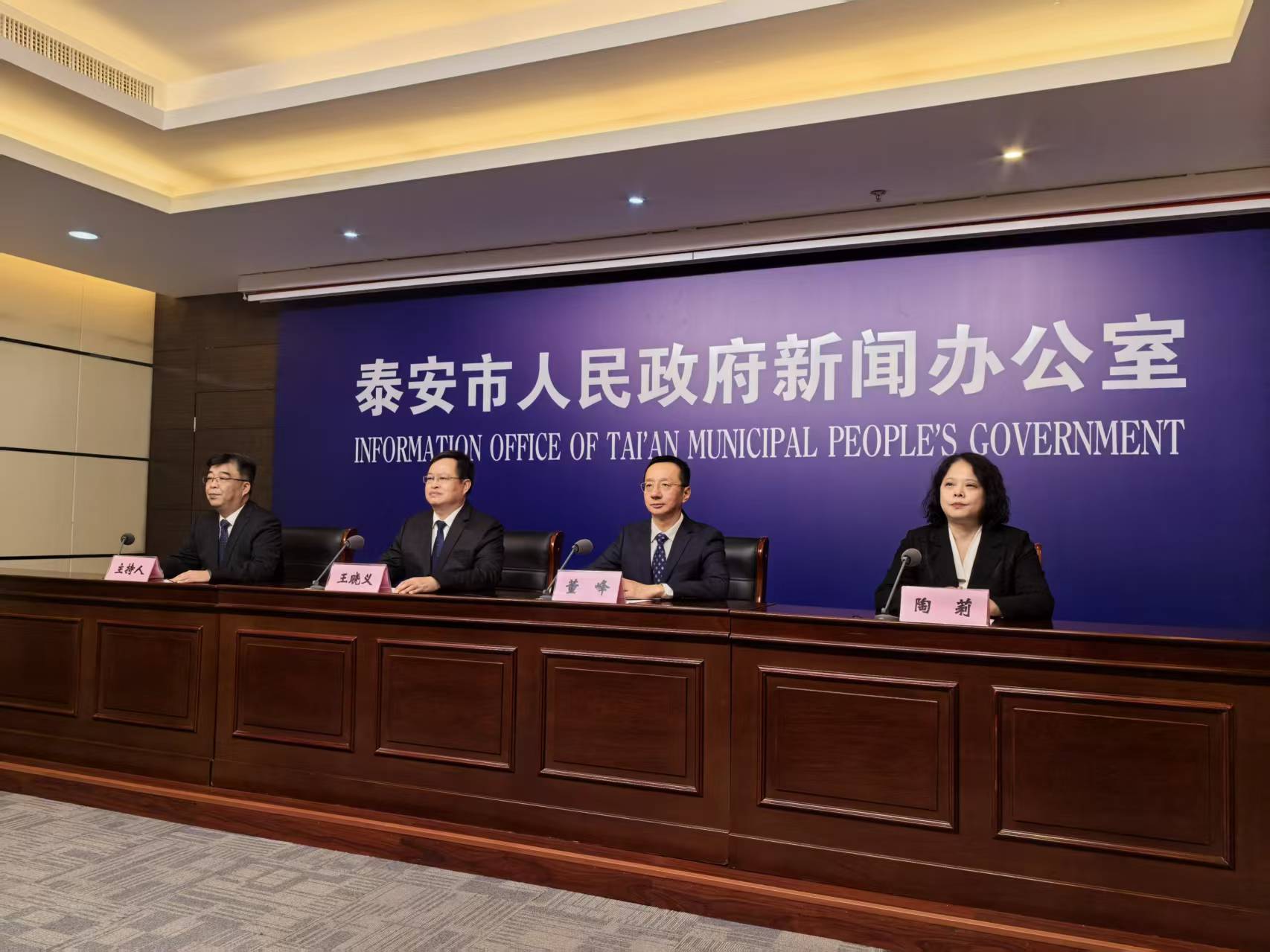 10月27日,泰安市政府新闻办召开“登高望远·寿比泰山”2025年全国“我们的节日·重阳”主题文化活动新闻发布会。市委宣传部副部长王晓义介绍了主题文化活动有关情况,市委宣传部、市民政局、泰山景区有关负责同志回答了记者提问。