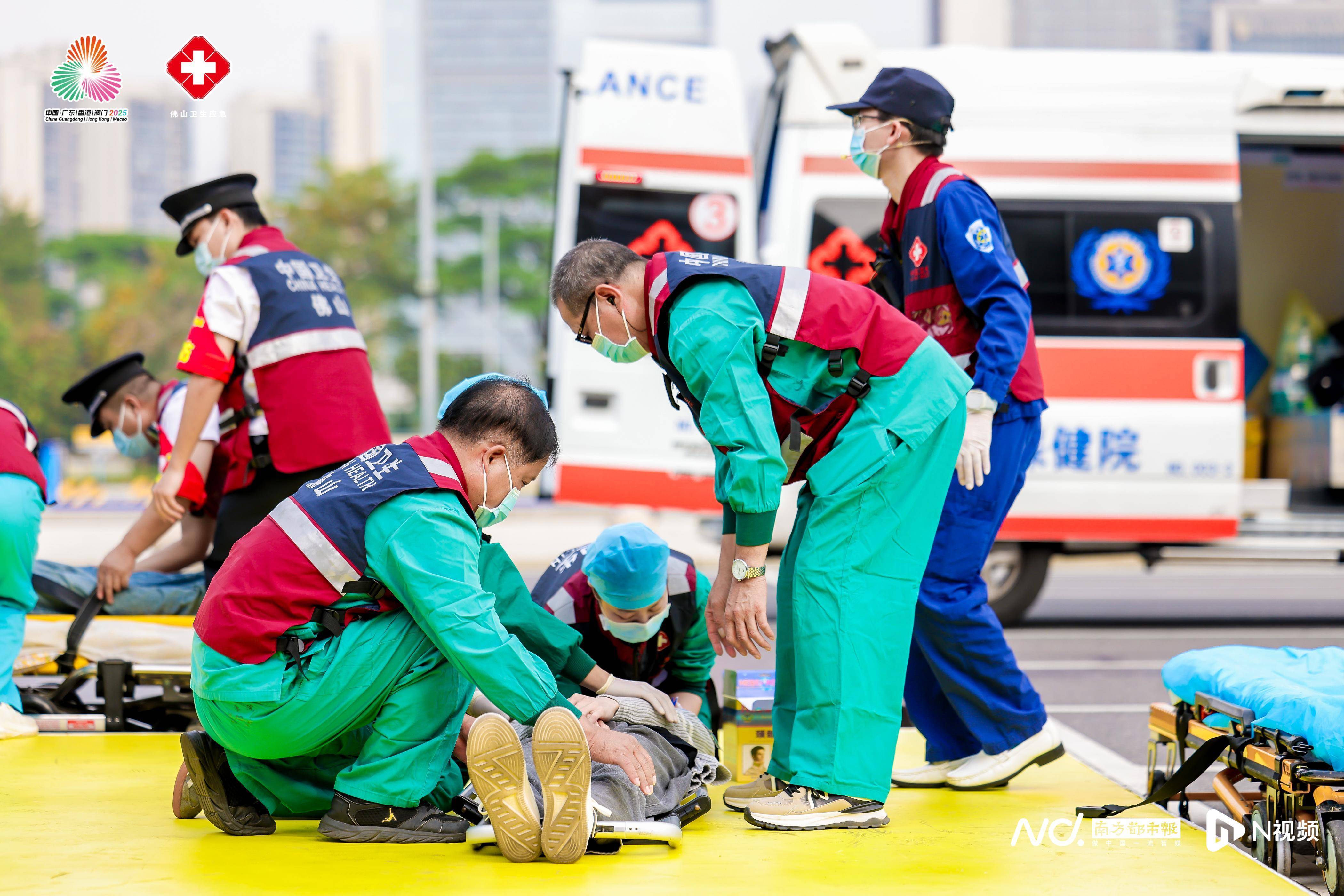 为做好第十五届全国运动会及残特奥会佛山赛区医疗保障工作,本次演练针对赛事期间可能出现的三类突发事件设置了模拟场景:群体性踩踏事件、输入性传染病案例及密闭空间气体中毒事件。